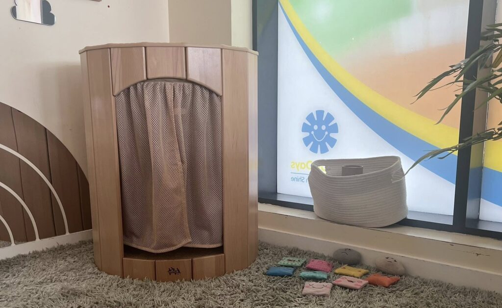 At Happy Days Nursery in Charlton Heights, Patchway, we believe every child deserves a warm and welcoming space to feel safe, calm, and supported. That’s why we’re excited to unveil our brand-new cosy/regulation space – designed especially for our little learners to take a break, relax, and regulate their emotions.