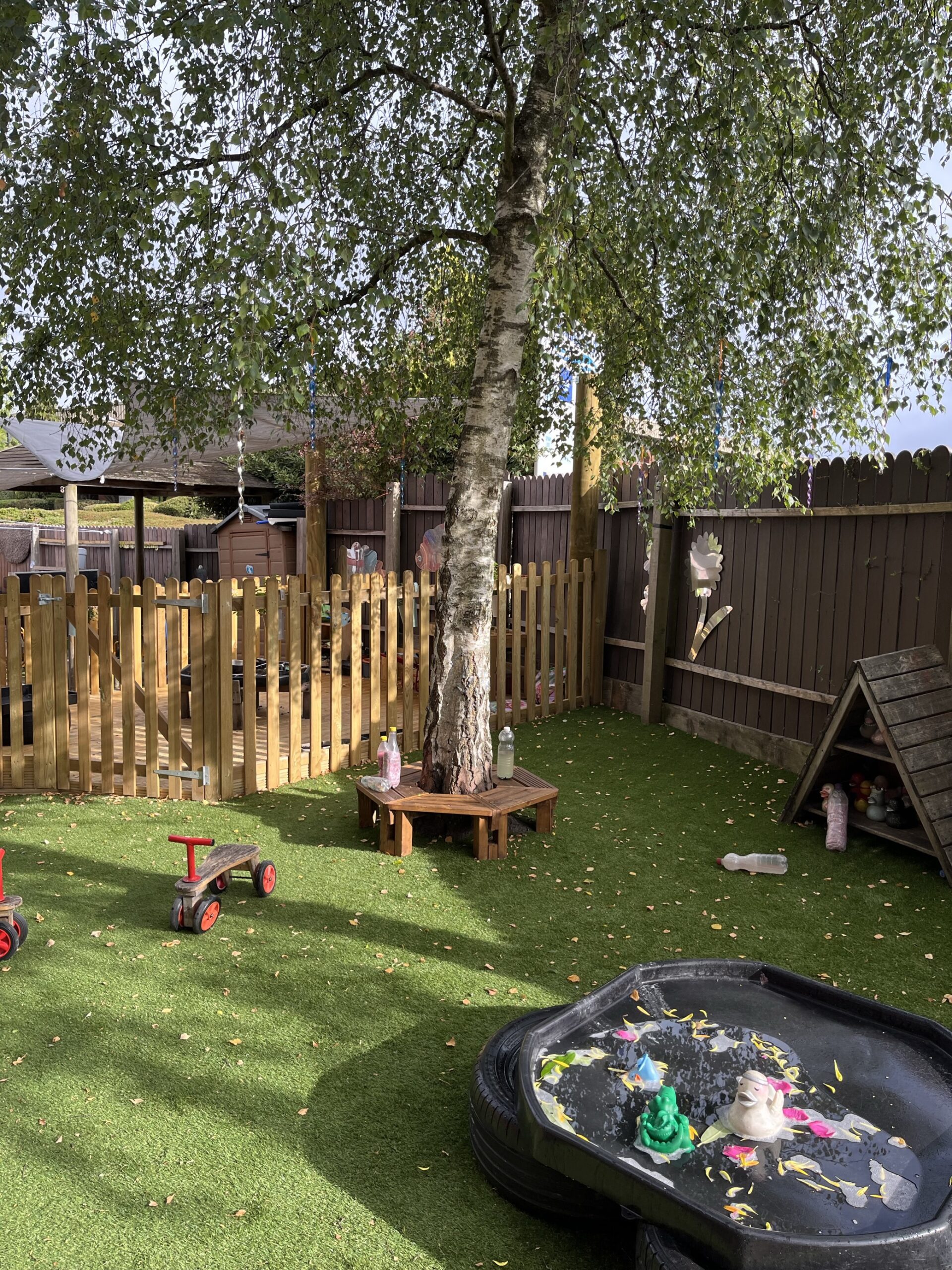 Our purpose-built nursery provides a calm, nurturing environment for children aged 0 to 5 years. With a strong focus on natural surroundings and child-led learning, all children enjoy free-flow access to secure outdoor play areas—encouraging exploration and independence in a safe setting. Despite being in a business park, our outdoor space is a hidden gem, surrounded by beautiful trees and filled with exciting equipment that inspires imaginative play.